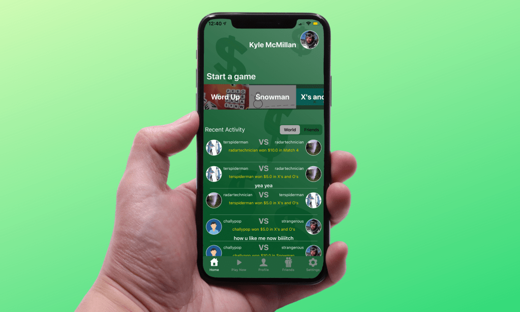Challenge, bet, and win money by playing 7 classic games with your friends.